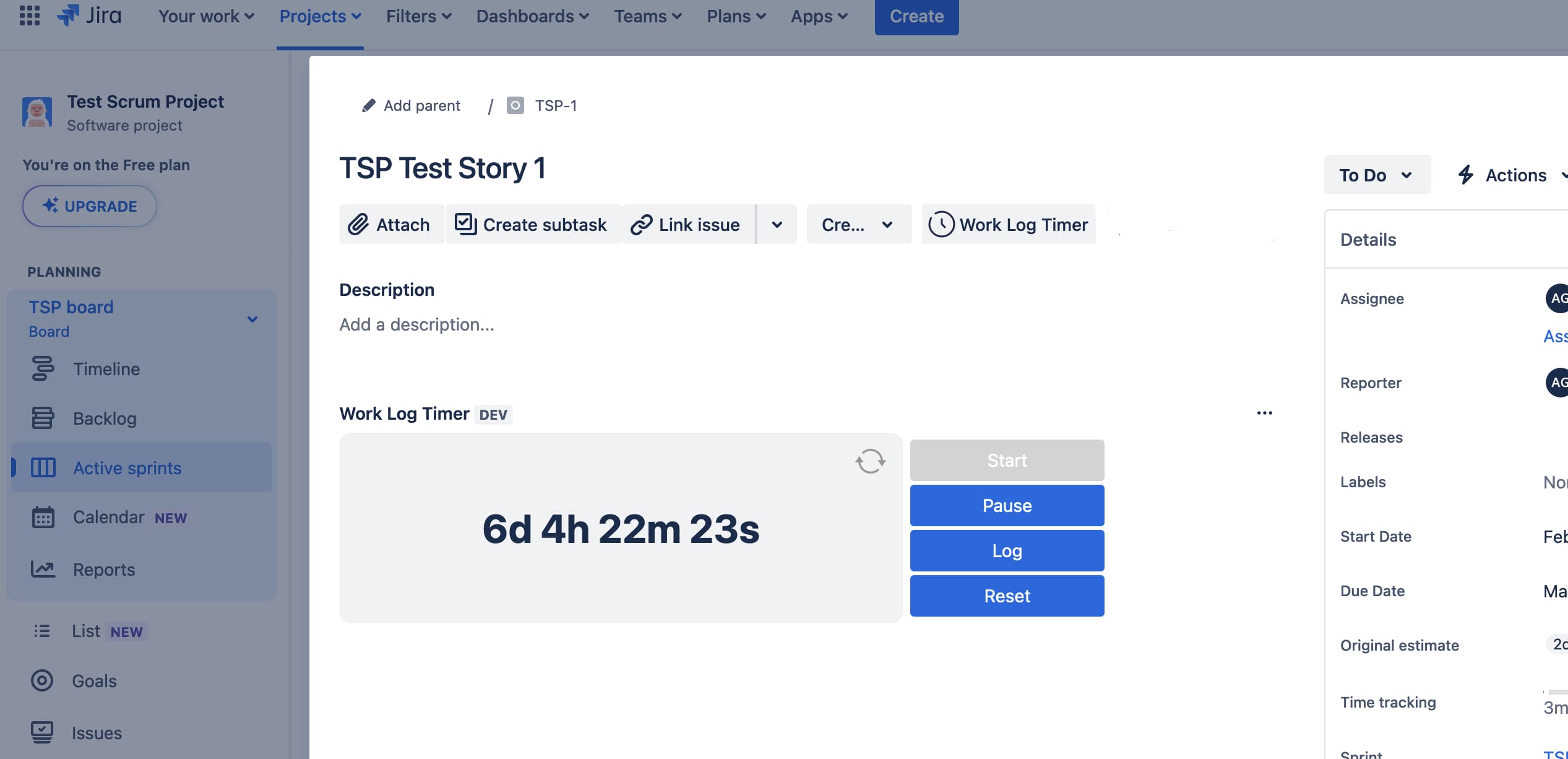 Start, pause and log time directly from any Jira issue with a simple timer panel. Track elapsed time in real-time and log worklogs with a single click when you're done.